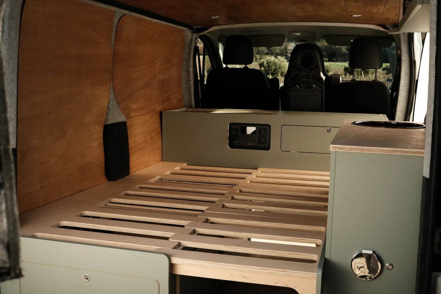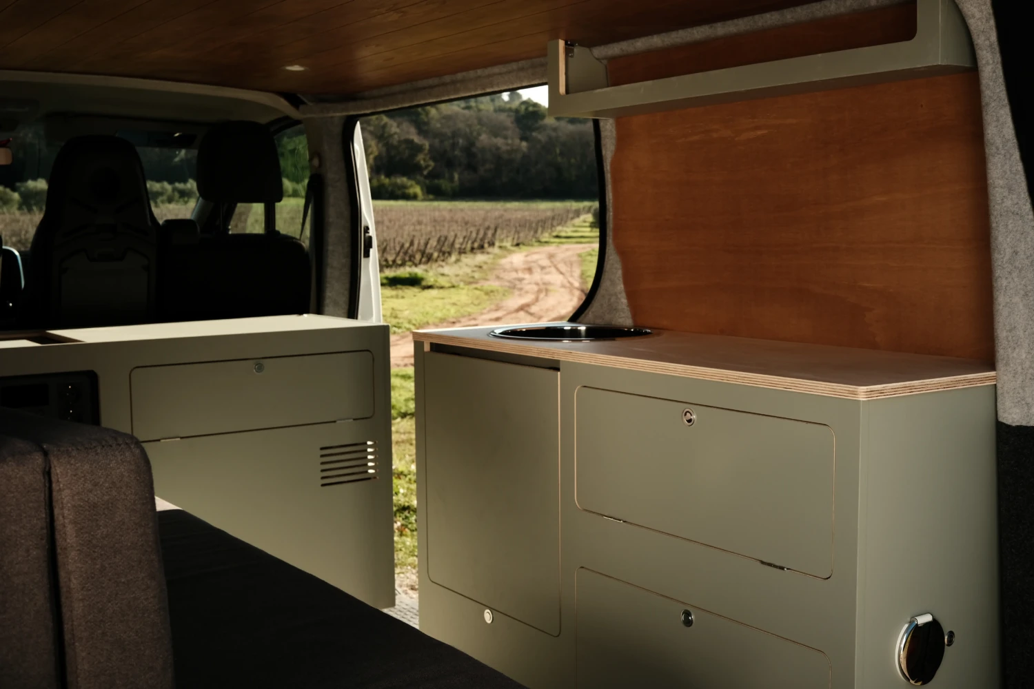 Powered by SmartsuppMeuble avant haut bois stratifié - Aménagement de van Var (83) | Avanoa Campers