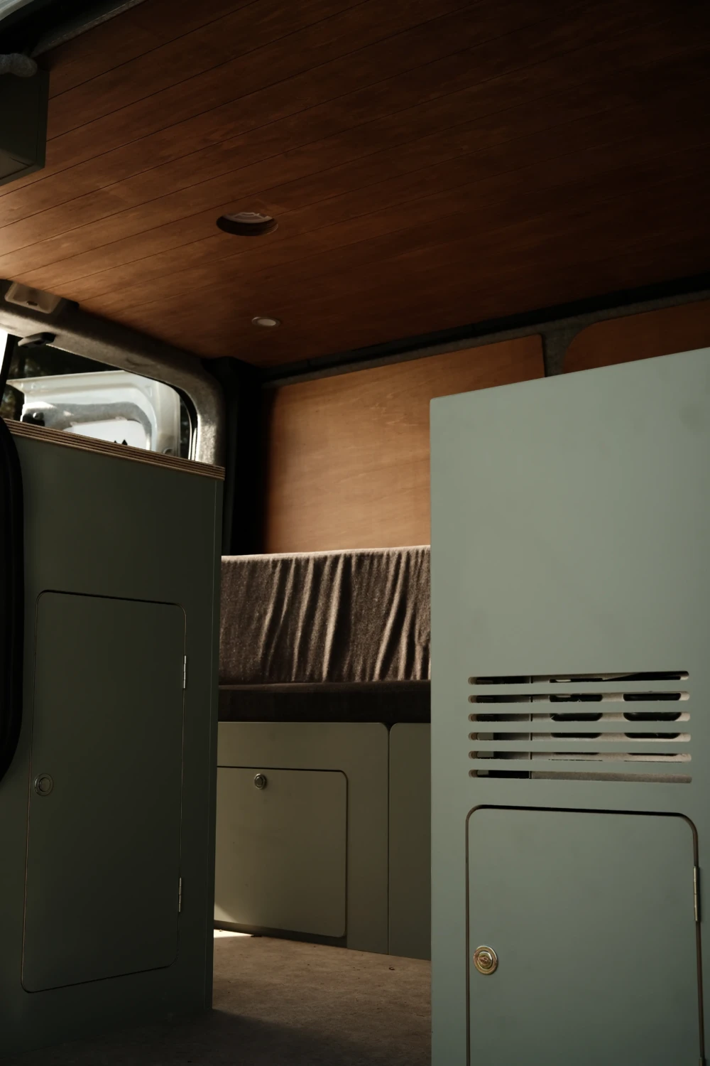 Conçu pour optimiser chaque mètre cube dans un van ou fourgon aménagé, ce meuble avant s’installe derrière les sièges conducteur et passager. Il constitue un véritable module structurant de l’aménagement, en venant s’aligner parfaitement à la hauteur du plan de travail de la cuisine, assurant ainsi une continuité fonctionnelle et esthétique dans l’espace de vie.